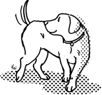 | 飼い主の脇で小さな360度の円を描くよう、犬に教えてみましょう。犬の鼻先にフード・マグネットをくっつける方法で始めるのがよいでしょう。回りやすそうな方向を選び、犬の鼻先を円を描くように誘導します。頭が動けば、体はついて動きます。何も言葉はかけません。もし完全な円を描かないのであれば、いったん止めてもう一度後からチャレンジしてみます。フードを上手に動かしきれいに円を描くように心がけましょう。はじめて360度の回転ができたら、「イエス」という言葉をかけられるように、そしてフードのご褒美をあげられるように準備しておきます。 |