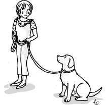 テリーの例:「ひとまとめにせず、細かく分けよう」これはマリアン・ブリーランド・ベイリーから教えられました。報酬により行動がおきるのだから、犬にとって易しい小さなステップになるように、行動を細かく分けることを忘れないでください。最初は飼い主のそばでたった1秒オスワリしただけでも十分です。